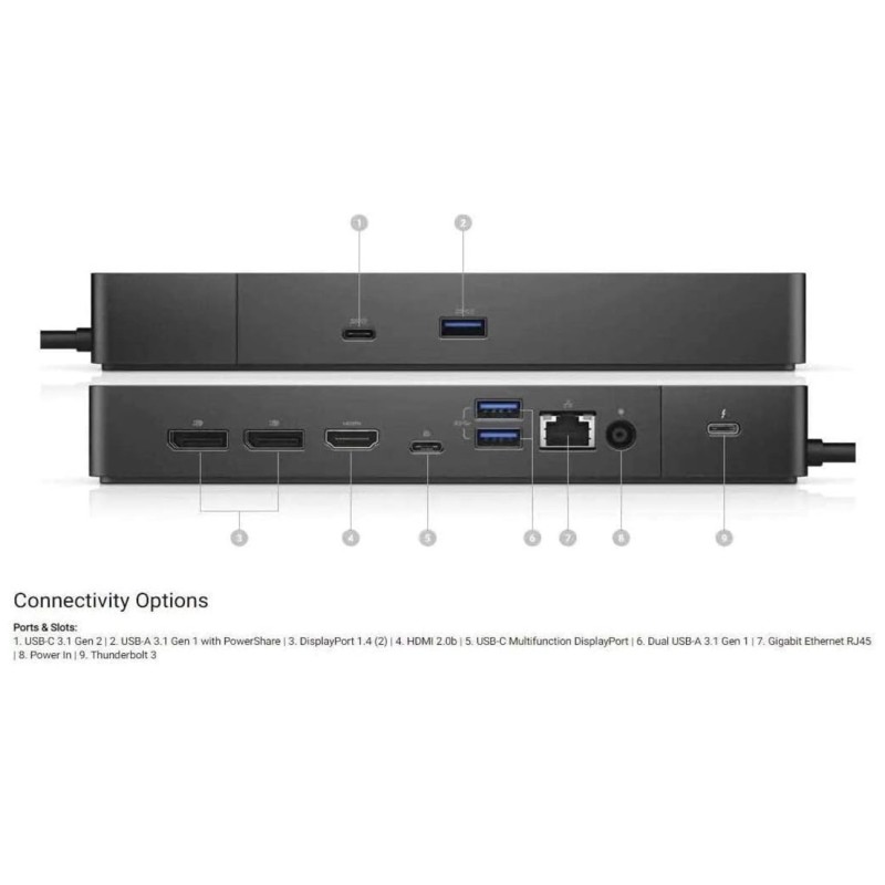 Station d’accueil dell WD 19 TB (ThunderBolt) Ce replicateur de port ( dock / docking ) USB-C vous permettra de faire du double écran grace à son port HDMI + les 2 ports DisplayPort 1 port HDMI 2 ports DisplayPort 1 port ethernet gigabit 3 ports USB 3.0 3 port usb-C 1 prise casque en façade